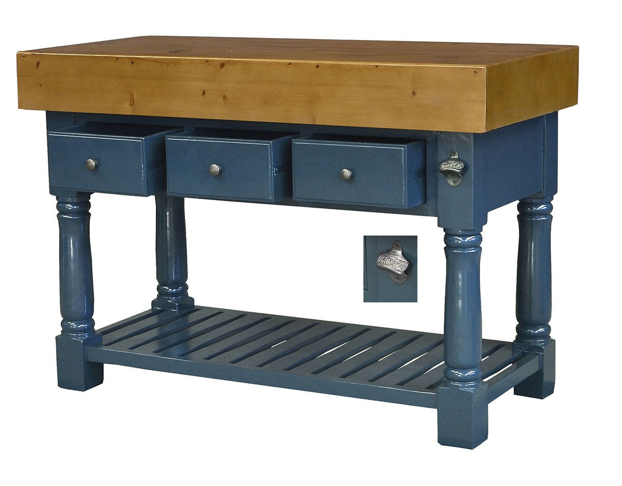Butcher Block Kitchen Island with Three Drawers – Haig Blue Colour