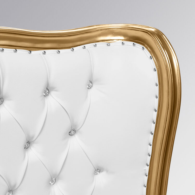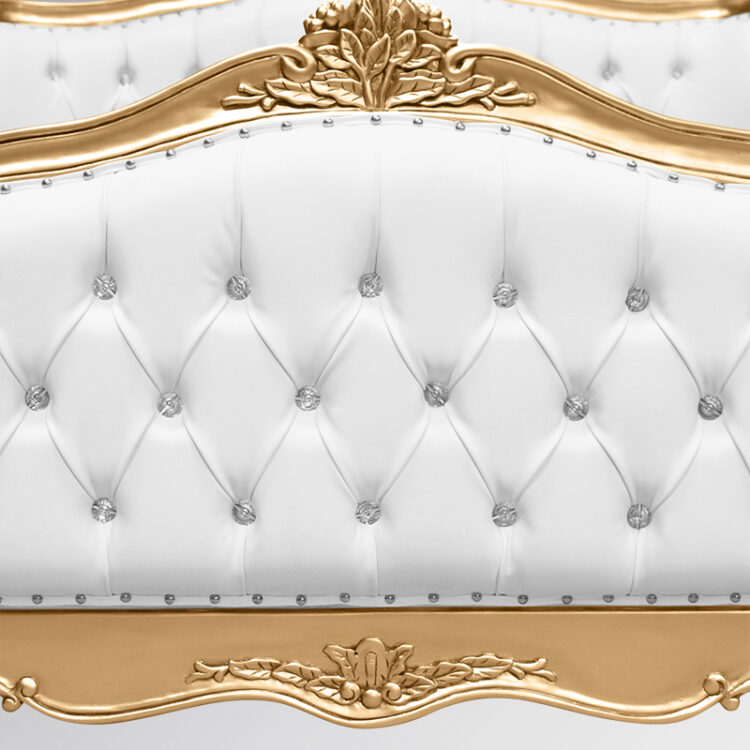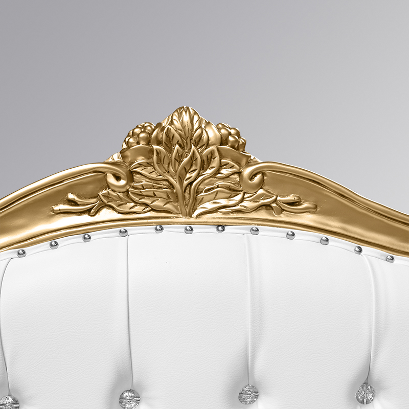 Louis XV – Violette Sleigh Bed in Gold Leaf Frame and White Faux Leather and Crystals