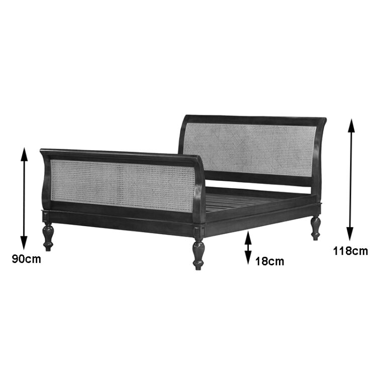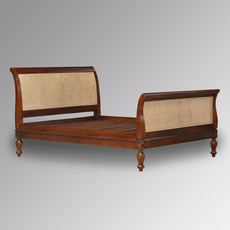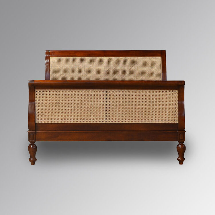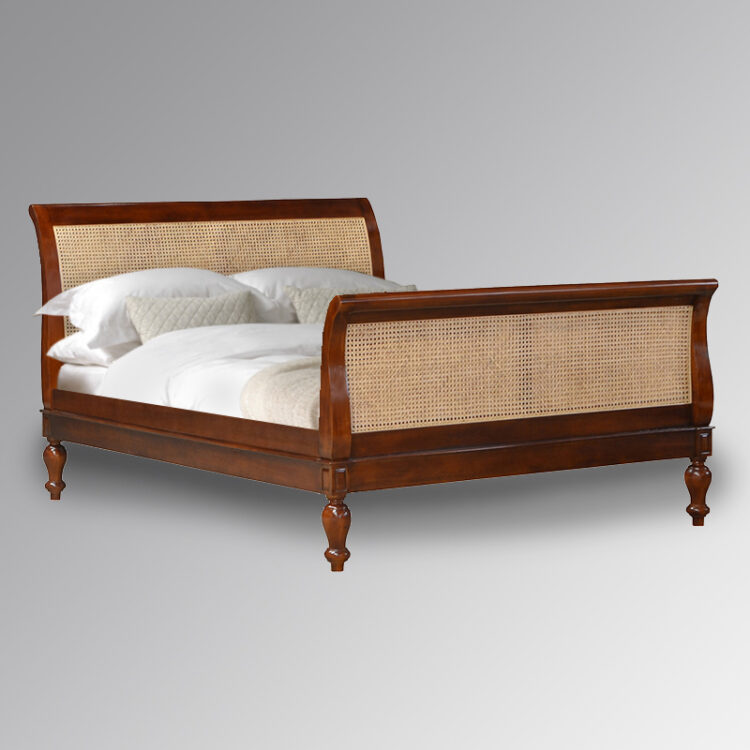 Montparnasse High End Sleigh Bed in Chestnut With Natural Rattan