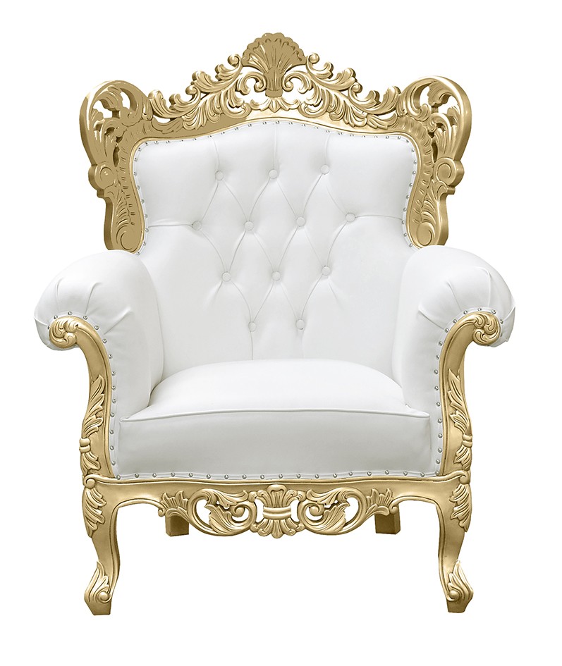 - Beautifully upholstered in White Faux Leather with Brass Studded riming & button down tufting.
