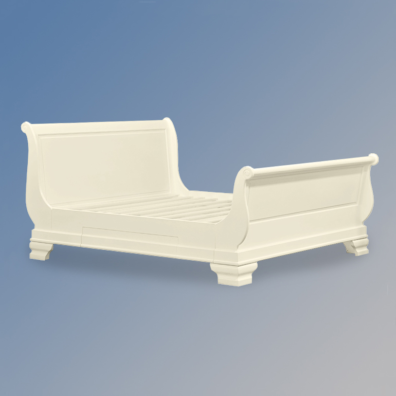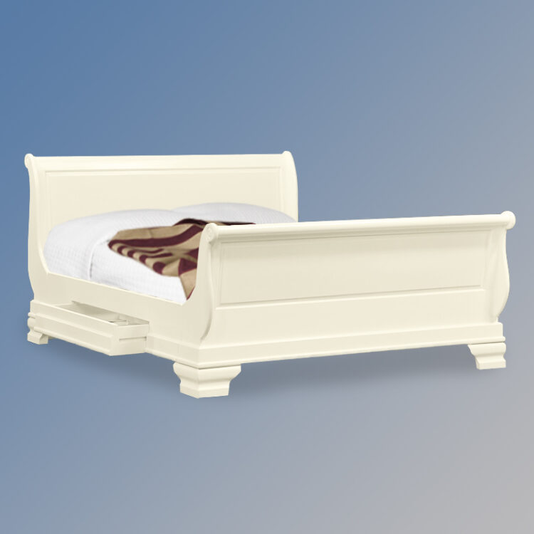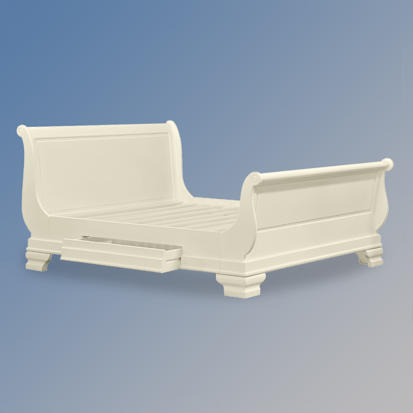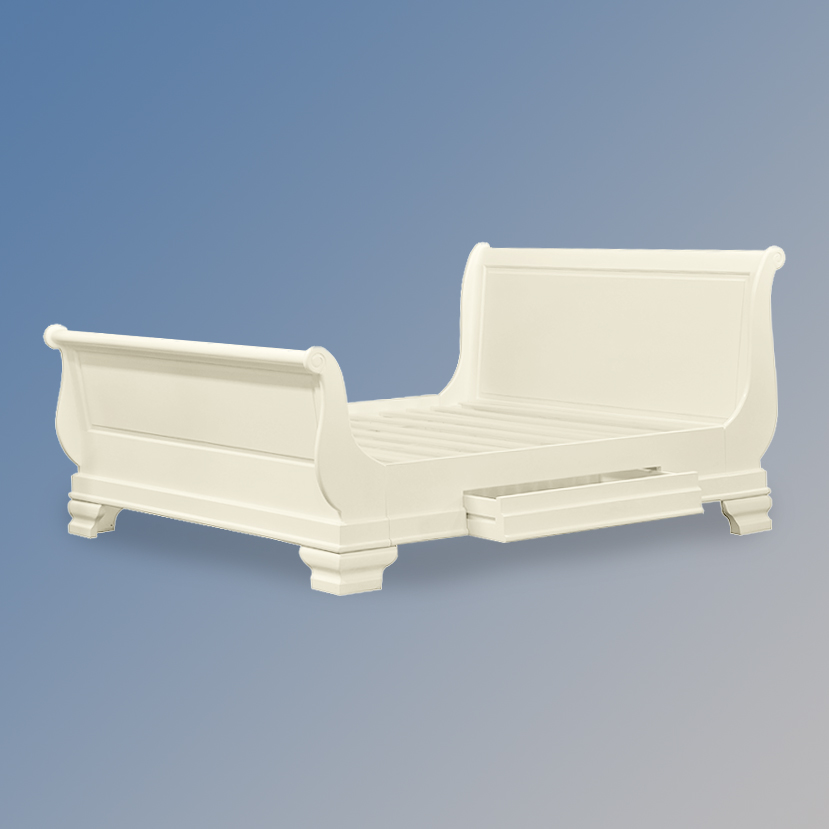 Versailles Tiroir Sleigh Bed – Hi End Footboard in French Ivory